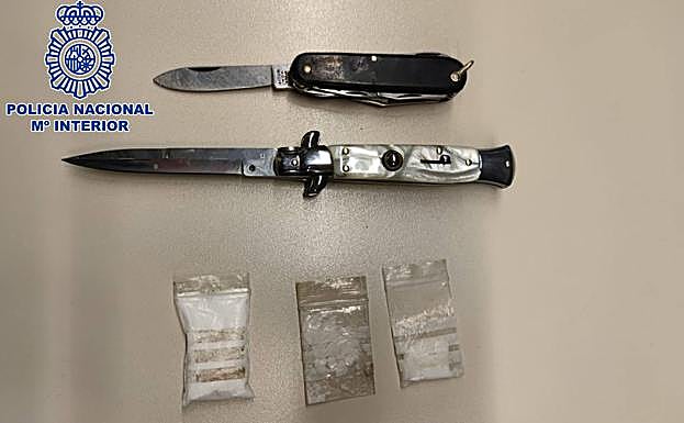 Tras ser detenido, el conductor manifestó que «iba con prisa para ver a una amiga». Durante el proceso de identificación, los policías constataron que poseía amplio historial delictivo y que en la Jefatura de Tráfico el vehículo figuraba con la IVT caducada. Todo esto llevó a los agentes a registrar el coche, en el que encontraron, debajo del asiento del conductor, «dos bolsas con polvo blanco al parecer cocaína», segun detalla la nota de la Policía. Además, en la puerta del copiloto localizaron una navaja de seis centímetros de hoja y en su parasol una navaja automática de 9 centímetros de hoja. Todo ello fue incautado y el hombre fue denunciado por dos infracciones graves a la Ley de Protección de la Seguridad Ciudadana, por portar, exhibir o usar armas prohibidas y por la tenencia de drogas en la vía pública.