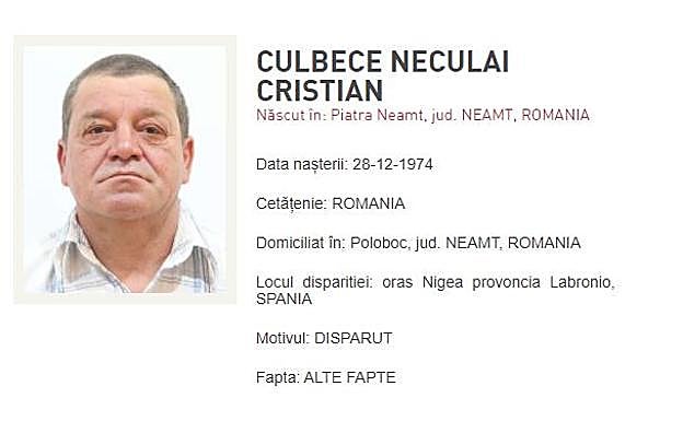 La Policía de Rumanía también ha emitido una alerta para tratar de encontrar al desaparecido.