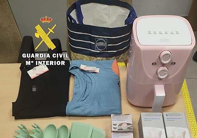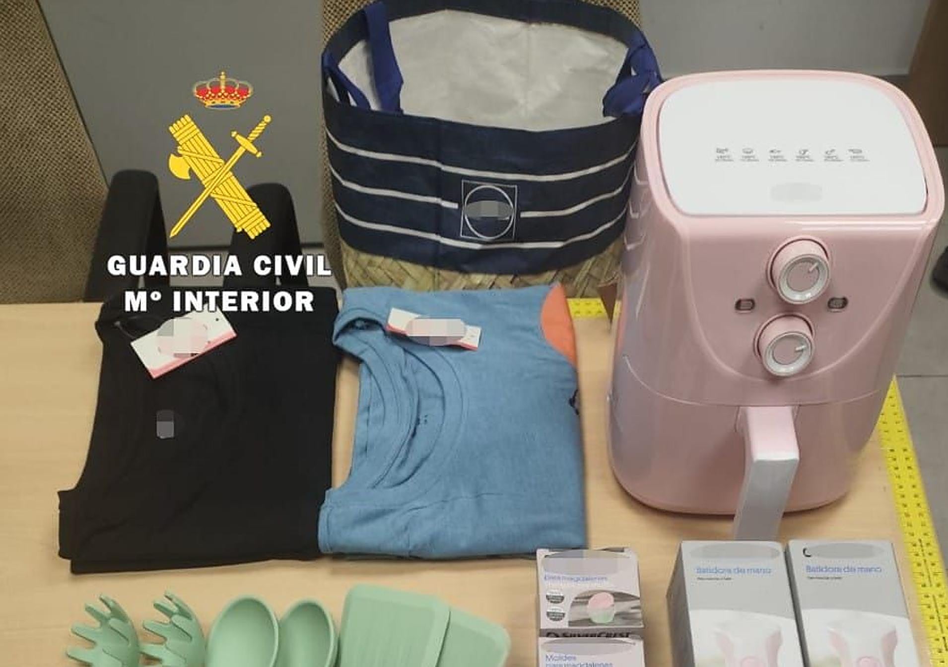 La Guardia Civil encontró en su vehículo diversos artículos, entre ellos una freidora de aire, batidoras en su caja original, utensilios de cocina, un ventilador y varias camisetas
