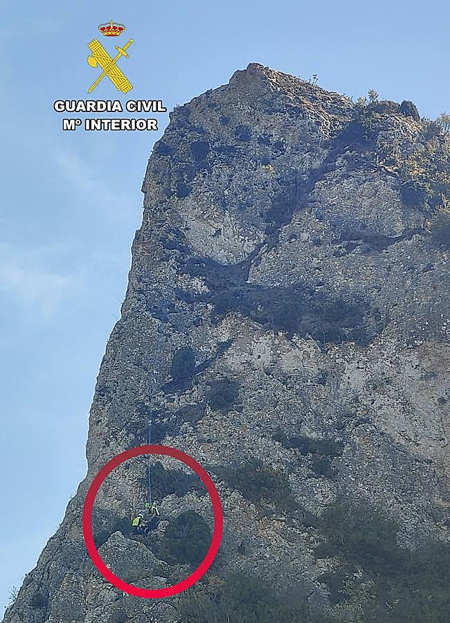Varios agentes especializados del Grupo de Rescate e Intervención en Montaña acudieron a la zona y localizaron a la mujer en la llamada Peña Lengua. Los guardias subieron por la zona sur hasta la cúspide de la peña, y desde ahí vieron a la mujer, atascada en una pequeña terraza unos 30 metros por debajo de donde ellos se encontraban. A continuación bajaron hasta donde estaba ella haciendo 'rapel' con sus cuerdas. Una vez llegaron a la mujer, la bajaron poco a poco, también mediante cuerdas, salvando pequeños cortados de hasta 10 metros de altura.