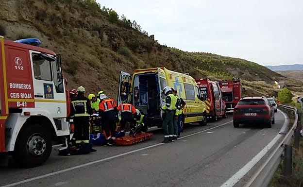 Se ha movilizado por proximidad a Bomberos de Navarra, Bomberos del CEIS, Guardia Civil y recursos de emergencias del Servicio Riojano de Salud.