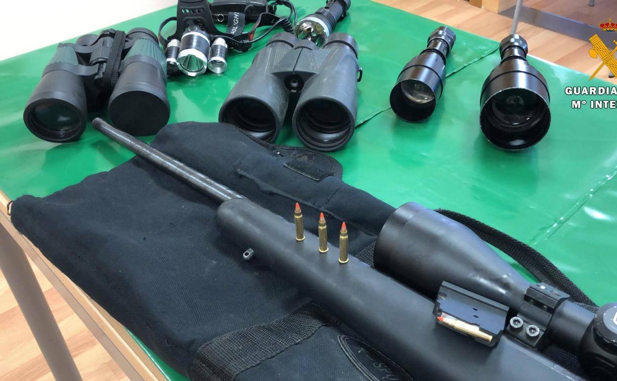 Los denunciados son ambos varones de nacionalidad española y 39 y 53 años, residentes de Aldeanueva de Ebro y Autol. Los agentes les han intervenido el arma, munición, dos binoculares y cuatro linternas.