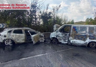 Como consecuencia del accidente se ha producido un incendio en el que los vehículos han ardido. Los bomberos de Navarra han extinguido el fuego y agentes de Policía Foral han acudido para dar apoyo en el lugar.