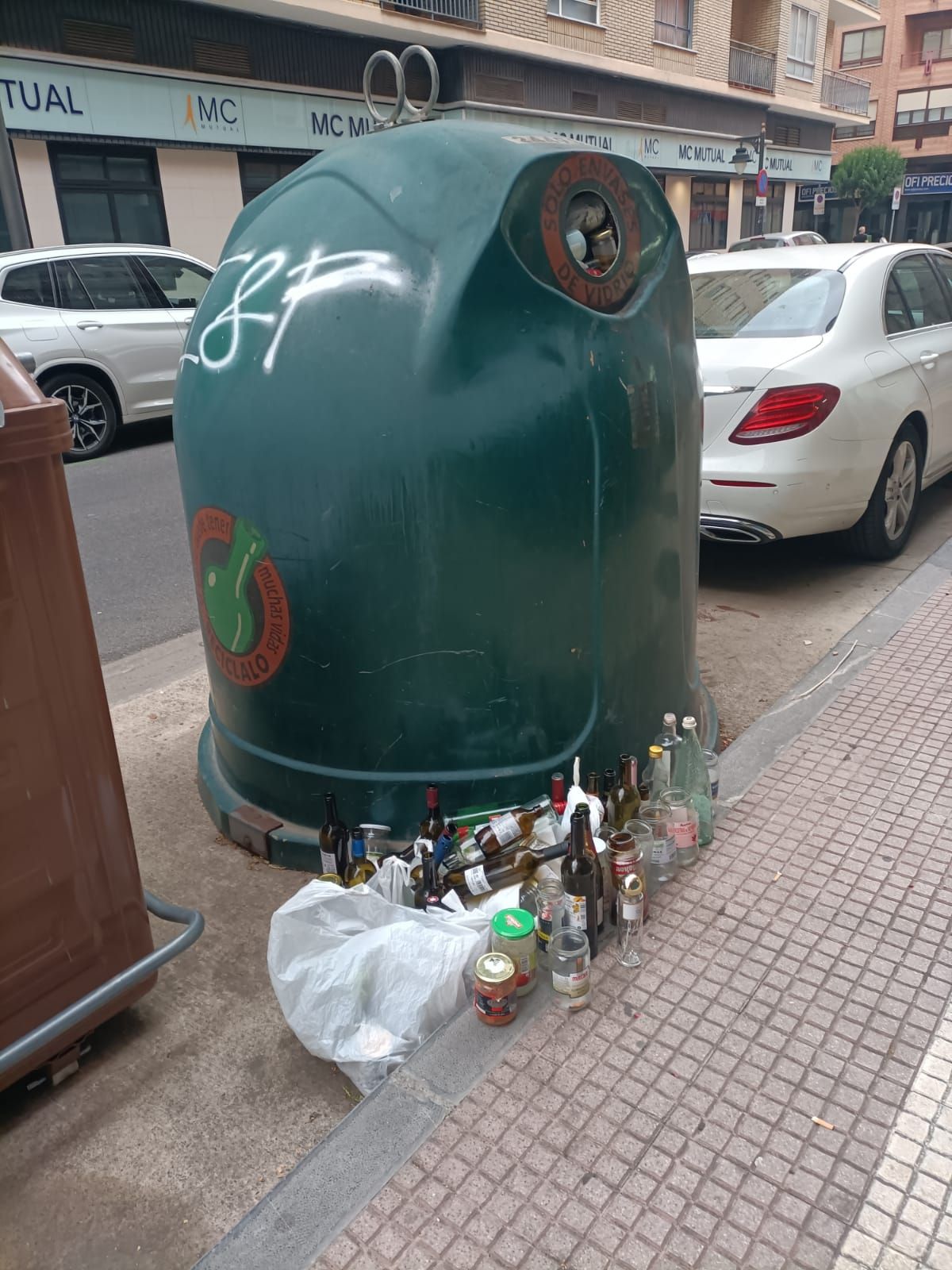 Un contenedor de vidrio «absolutamente lleno» en Marqués de la Ensenada
