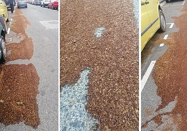 Abedules, arces, fresnos... las semillas se acumulan en las calles, como en esta del barrio de Yagüe, donde su presencia es notable. Un vecino cita que ha tenido que «barrer las de la entrada a mi garaje porque voy en moto y las ruedas no se agarran. Considero que es peligroso y la montaña crece día a día, lo que deja a las claras que tampoco se pasa la escoba muy a menudo».