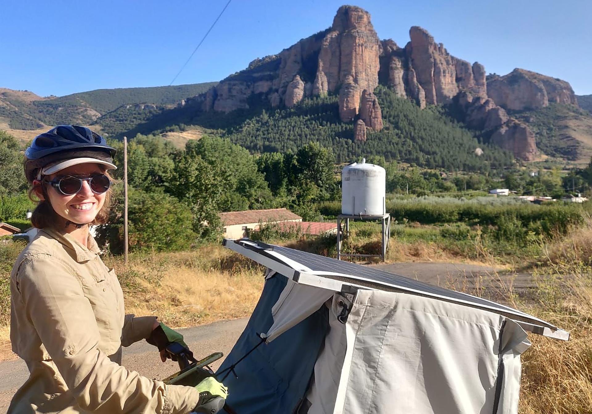 Una familia francesa ha cruzado este fin de semana La Rioja rumbo a Gibraltar. No tendría nada de particular si no fuera porque viajan en bicicletas solares, que partieron desde La Roche Sur Yon, cerca de Nantes (Francia), y que van acompañados de su hijo Léonard, de un año y medio. «Nos dedicamos a viajar en bicicleta desde hace muchos años. Primero caminábamos con mochila pero la ventaja de la bici es que llegas más lejos y no cargas tanto peso, así que no da pereza alargar un poco para poder visitar un castillo o una iglesia», explica Killien Dalle Lobato. Él diseña bicicletas urbanas y de flotas de alquiler para la marca Arcade Cycles, así que modificó la suya de gravel y la de su esposa, Manon Verger, profesora de Agricultura, para convertirlas en eléctricas y solares. Mientras pedalean absorben la energía fotovoltaica.