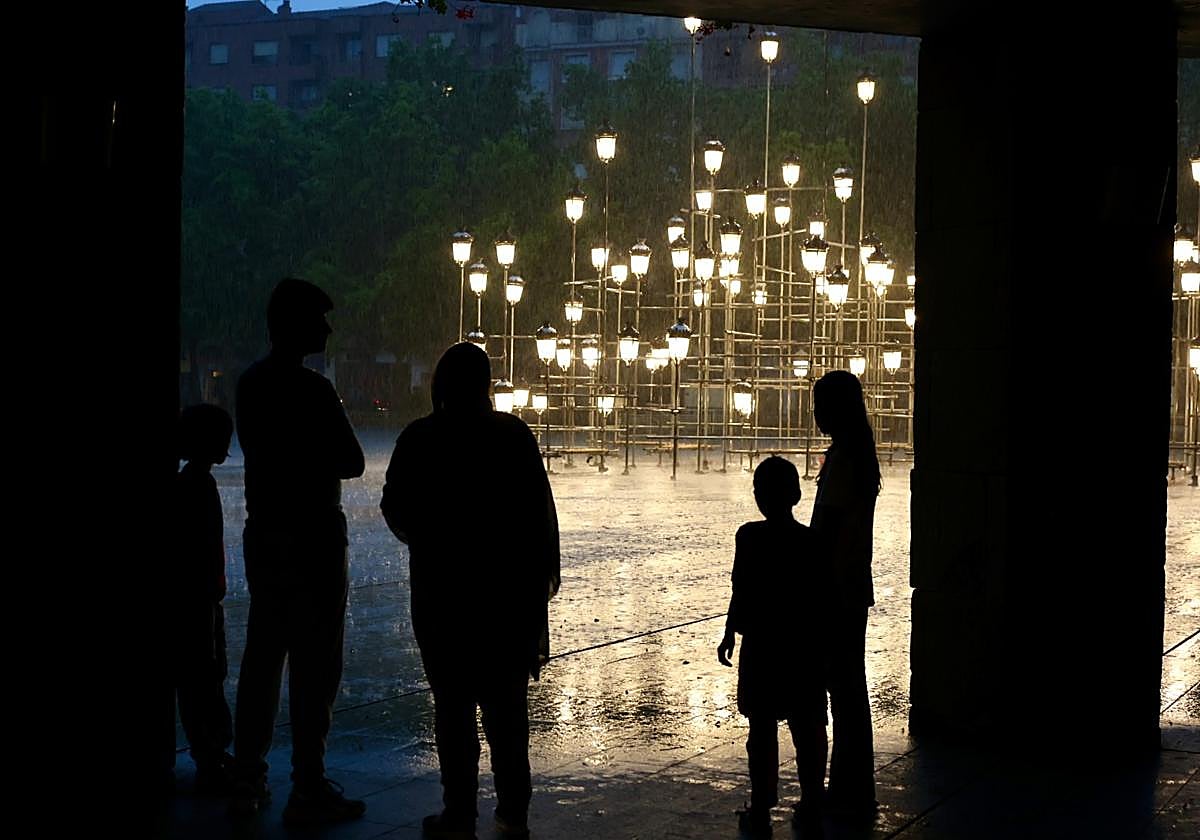 La tormenta en Logroño ha durado unos minutos, pero su intensidad ha obligado a hacer una pausa a quienes caminaban por las calles de la ciudad. Quienes paseaban por el Ayuntamiento han podido aprovechar para disfrutar de una de las propuestas de Concéntrico bajo el agua.