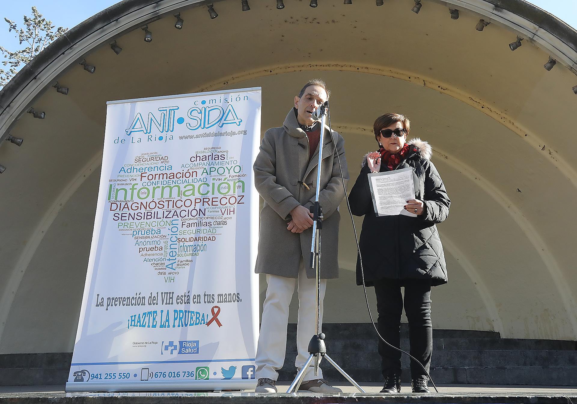 Carmen Tamayo, trabajadora social en el Ayuntamiento de Logroño a punto de jubilarse, ha sido la encargada de poner voz al colectivo con la lectura de un manifiesto en el que bajo el título 'Comunidad, derechos y vida digna', ha advertido de que «es esencial trabajar por un estigma cero en todos los ámbitos. El éxito no se mide solo por la supresión de la carga viral, también se mide en calidad de vida, bienestar emocional y la posibilidad real de desarrollar un proyecto vital».