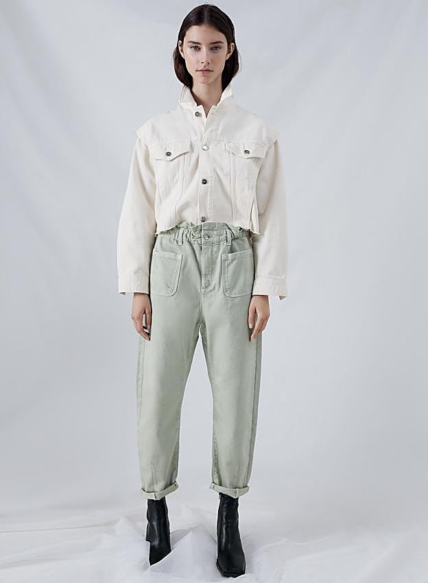 Los pantalones acampanados como los 'wide lage' -pata de elefante- o los 'flare' -pesqueros que terminan en campana- en tonos tierra son perfectos para lograr estilos sofisticados, siluetas alargadas y elegantes. Y los 'slouchy' -pantalón de cintura alta, de efecto bombacho en las caderas para volver a ajustarse de nuevo al tobillo- o los 'baggy paper bag' -modelos de talle alto que se ajustan a la cintura con una lazada que, al ceñirse, provocan que la tela se frunza creando el mismo efecto que una bolsa de papel cuando se ata- continúan causando furor desde el año pasado pero que esta temporada vienen en tonos pastel consiguiendo un look cosmopolita urbano y a la vez enternecedor.