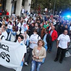 Los participantes, que han protestado con mascarillas y guantes quirúrgicos, portaban pancartas en las que se leía 'Los recortes matan', 'Sanidad pública, de todos y para todos' o 'Gestión Ebola, Impprudente, nefasta e Incomppente', así como otros de apoya a Teresa Romero. Tras protestar frente a la Delegación, han recorrido el Espolón para cortar durante unos minutos Muro de la Mata.