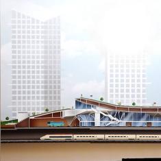 El edificio se alzará frente y de forma simétrica al que actualmente alberga la estación del ferrocarril. La unión entre los dos edificios se hará con una gran cúpula sobre la prolongación de avenida de Colón, sobre la que se dará continuidad al parque Felipe VI.