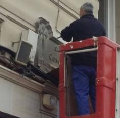 El Ayuntamiento elimina la placa de bronce de la entrada de Calvo Sotelo con Vara de Rey, la última que quedaba con la denominación franquista