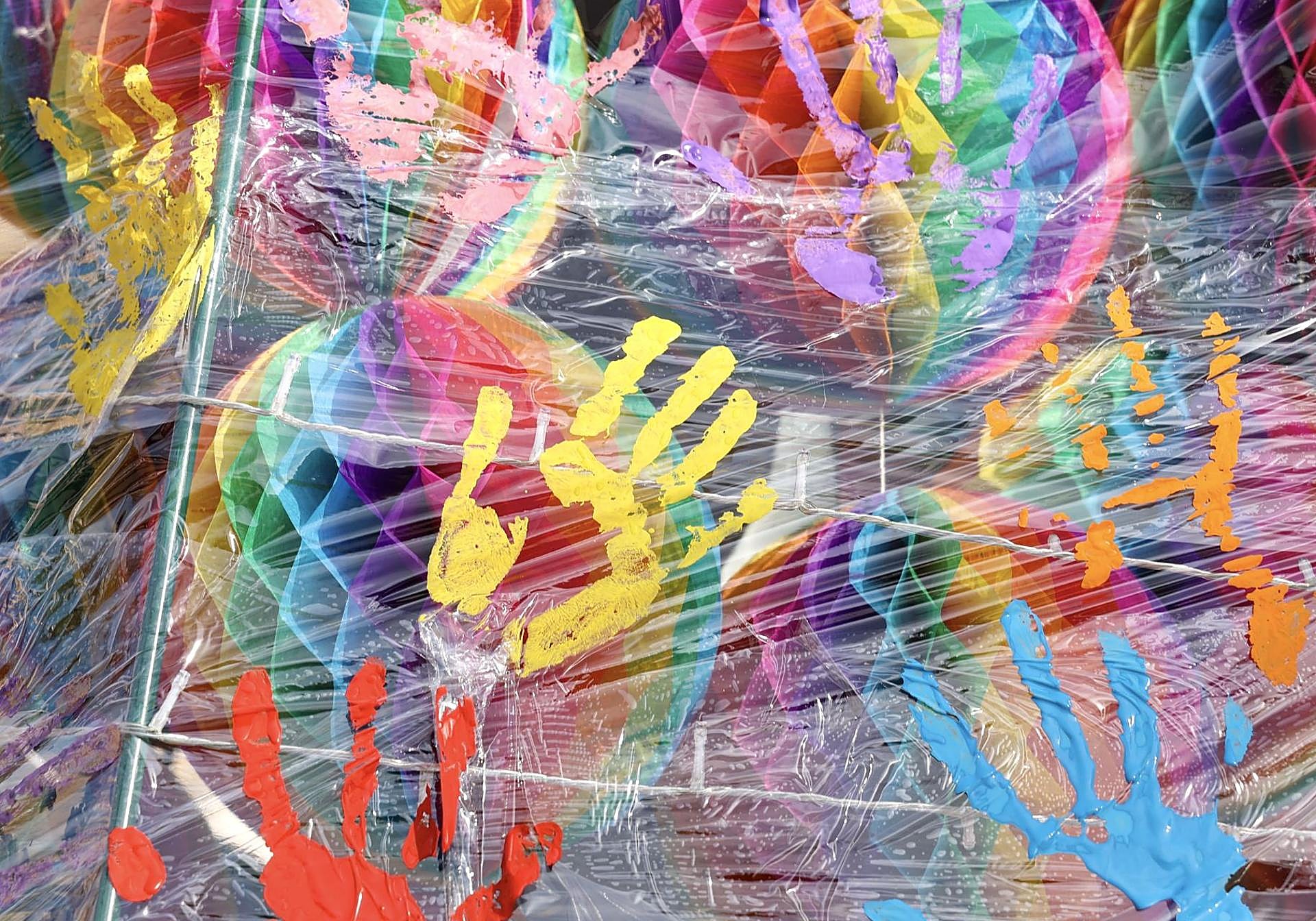 Finalmente, personas que han participado en el taller han plasmado sus manos, tintadas en colores, sobre el papel transparente que ha rodeado la estructura metálica, en referencia al lema de esta actividad «Deja huella en tu ciudad», ha detallado Serrano.