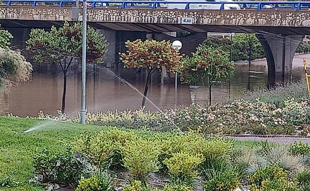 Las dificultades que se han generado en la zona del entorno de Las Gaunas han estado acompañadas por la anécdota. Por si no fuera suficiente con la lluvia, el riego de los jardines se encontraba activado. Lógicamente se trata de una coincidencia con la programación automática del riego, pero ha llamado la atención.