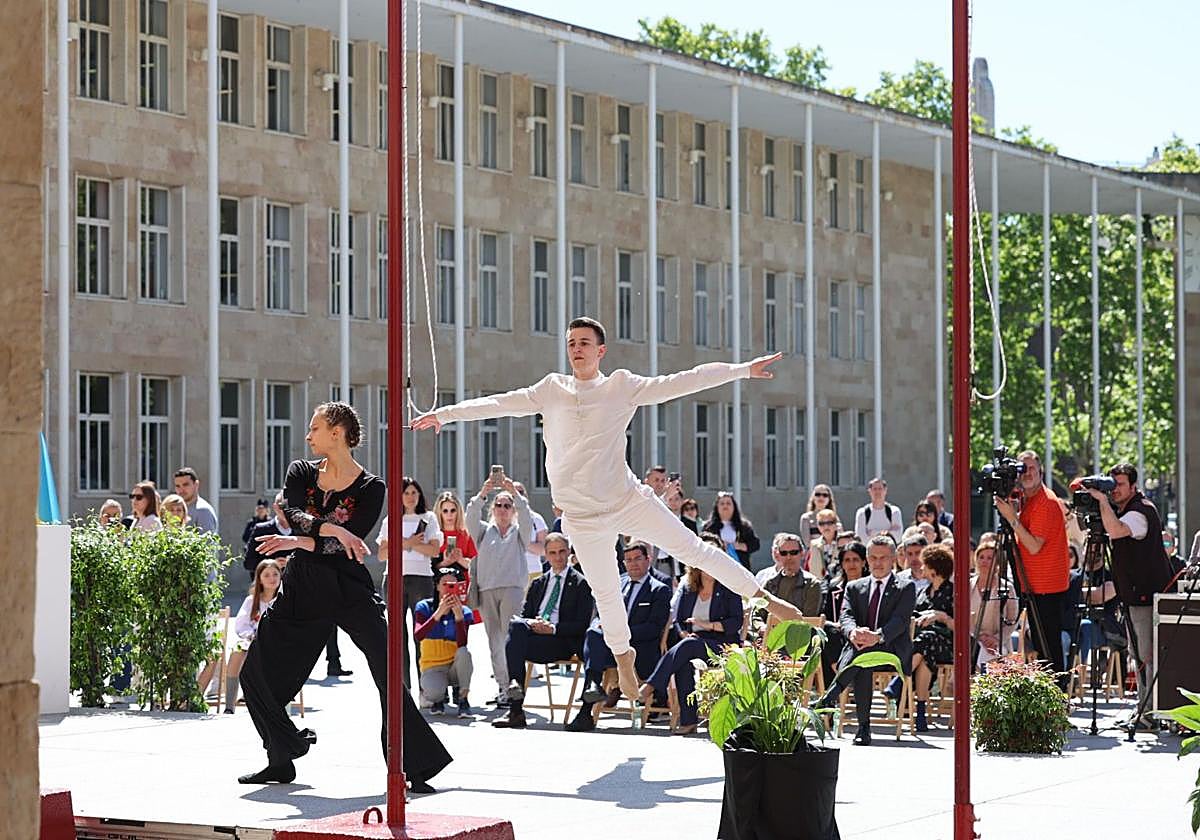 Música, baile e incluso pan y sal. La Asociación Ucrania-Rioja se ha llevado este jueves de la plaza del Ayuntamiento el galardón Estrella de Europa que cada año, el 9 de mayo, entrega el Consistorio logroñés a las entidades que mejor representan o defienden los valores de la UE.