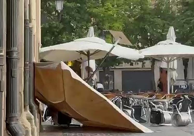 Por otra parte, eventos programados en la calle en el entorno de 21.00 horas de la tarde, caso del certamen Bailando en Plata o el Festival de las Naciones, se tuvieron que desalojar sin que se registraran incidencias. En la calle, en el momento álgido de la tormenta fueron varios los toldos que salieron volando, algunos de ellos en terrazas y con cierto peligro para clientes y viandantes, como atestiguan algunas de las grabaciones que llegaron a este periódico.