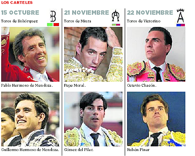 Tras este festejo, se regresará de nuevo a La Ribera un mes después para culminar el proyecto, que comenzará este jueves en Cabra (Córdoba). Será el sábado 21 y el domingo 22 de noviembre cuando se abran de nuevo las puertas, y para estas fechas se han reseñado reses de dos de las ganaderías más legendarias e importantes del campo bravo, que son Miura y Victorino Martín. Pepe Moral y Gómez del Pilar serán los encargados de lidiar los miuras el sábado, y Octavio Chacón y Rubén Pinar los victorinos el domingo. Salvo Pinar, los tres matadores de toros harán el paseíllo desmonterados, ya que debutarán en el coso logroñés. También saltarán por primera vez al ruedo de esta plaza reses con el hierro de Miura, los toros que pastan en Zahariche. Sin lugar a duda uno de los grandes alicientes.