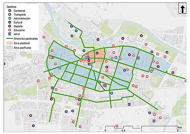 Pero no solo de áreas pacificadas habla el documento 'Logroño Calles Abiertas' porque, entre las medidas recogidas, figura, de entrada, una red saludable que integre distintos itinerarios peatonales y ciclistas que aseguren el acceso por estas formas de movilidad activa a los principales centros de atracción de la ciudad (desde colegios a centros de salud, pasando por dotaciones culturales, sanitarias y comercios).