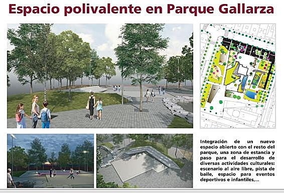«Integración de un nuevo espacio abierto con el resto del parque, una zona de estancia y paso para el desarrollo de diversas actividades culturales: escenario al aire libre, pista de baile, espacio para eventos deportivos e infantiles...». Así se ha presentado este viernes el espacio polivalente en el parque Gallarza que reemplazará al fallido y desechado proyecto de Casa del Cuento, primero, de las Letras, después.