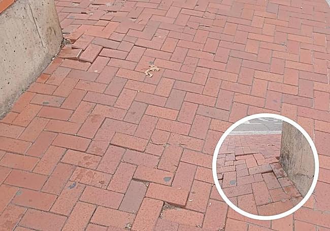 Baldosas levantadas cerca de un colegio e instituto de Logroño