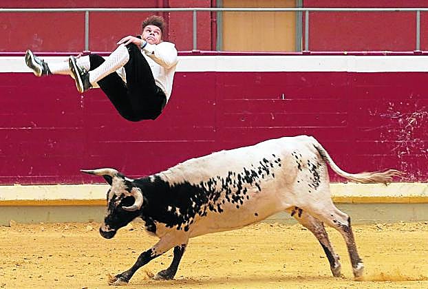 Tres capítulos: toreo a pie, toreo de recortes y, finalmente, vacas para los jóvenes valientes que se atrevieron a bajar a la candente para sentir de cerca el bufido de las vacas de Toropasión. Javier Marín es un joven matador de toros de Cintruénigo (Navarra) que tomó la alternativa hace dos años en Tudela y que este año actuará en la Feria de del Toro de Pamplona el 13 de julio ante reses de La Palmosilla.