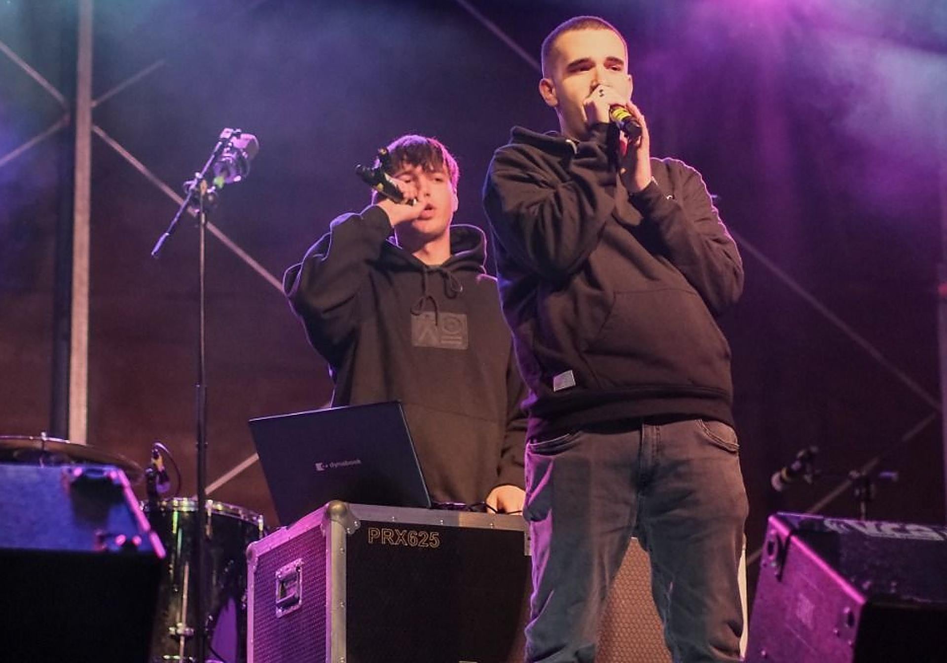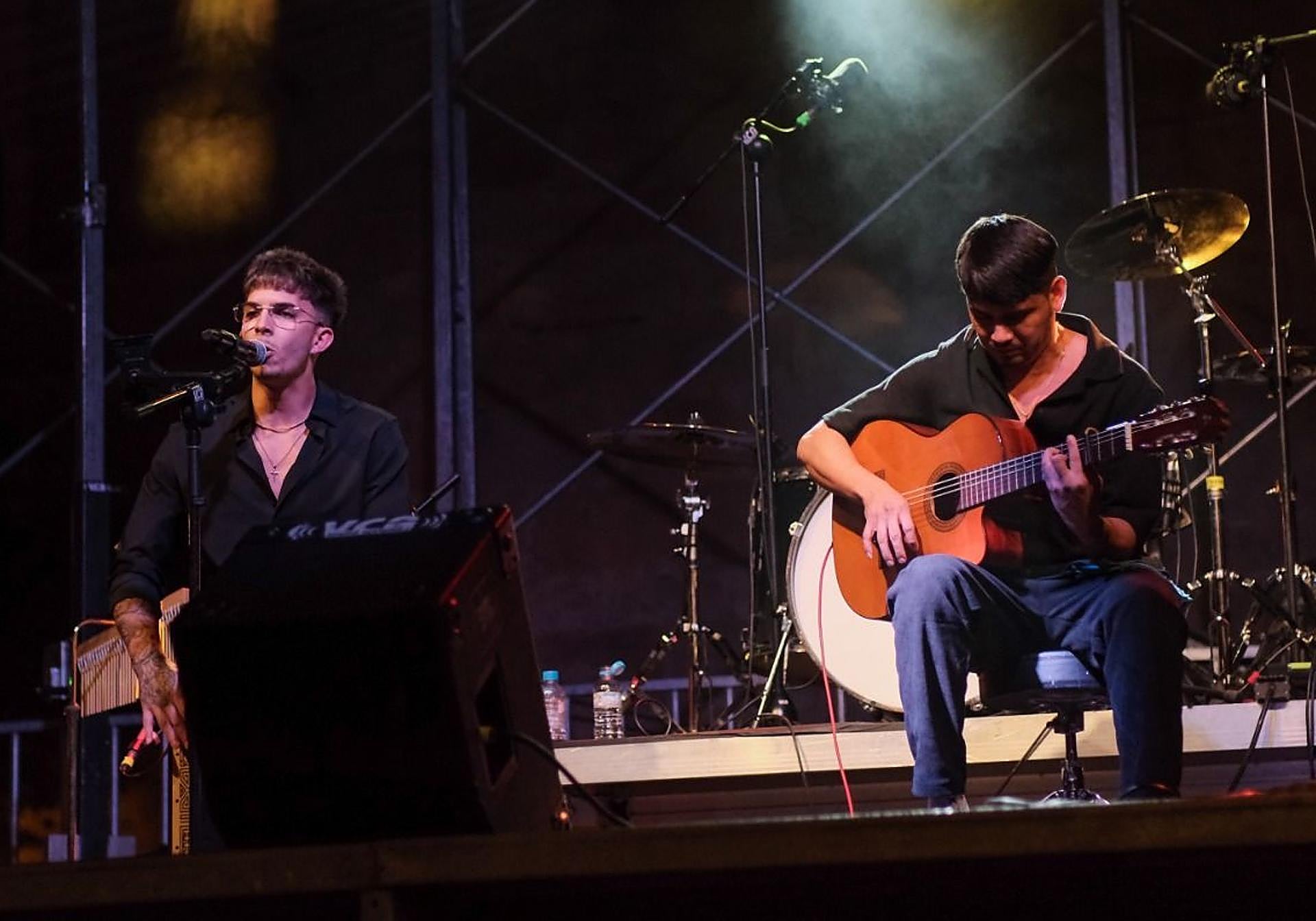 Los jóvenes locales LMC & DJ Kitos y Ayvan Romero muestran su música en la plaza del Parlamento junto a El Posti, aunque fue el dúo aragonés Modelo el que más sorprendió y agradó al público con su alegría e intensidad