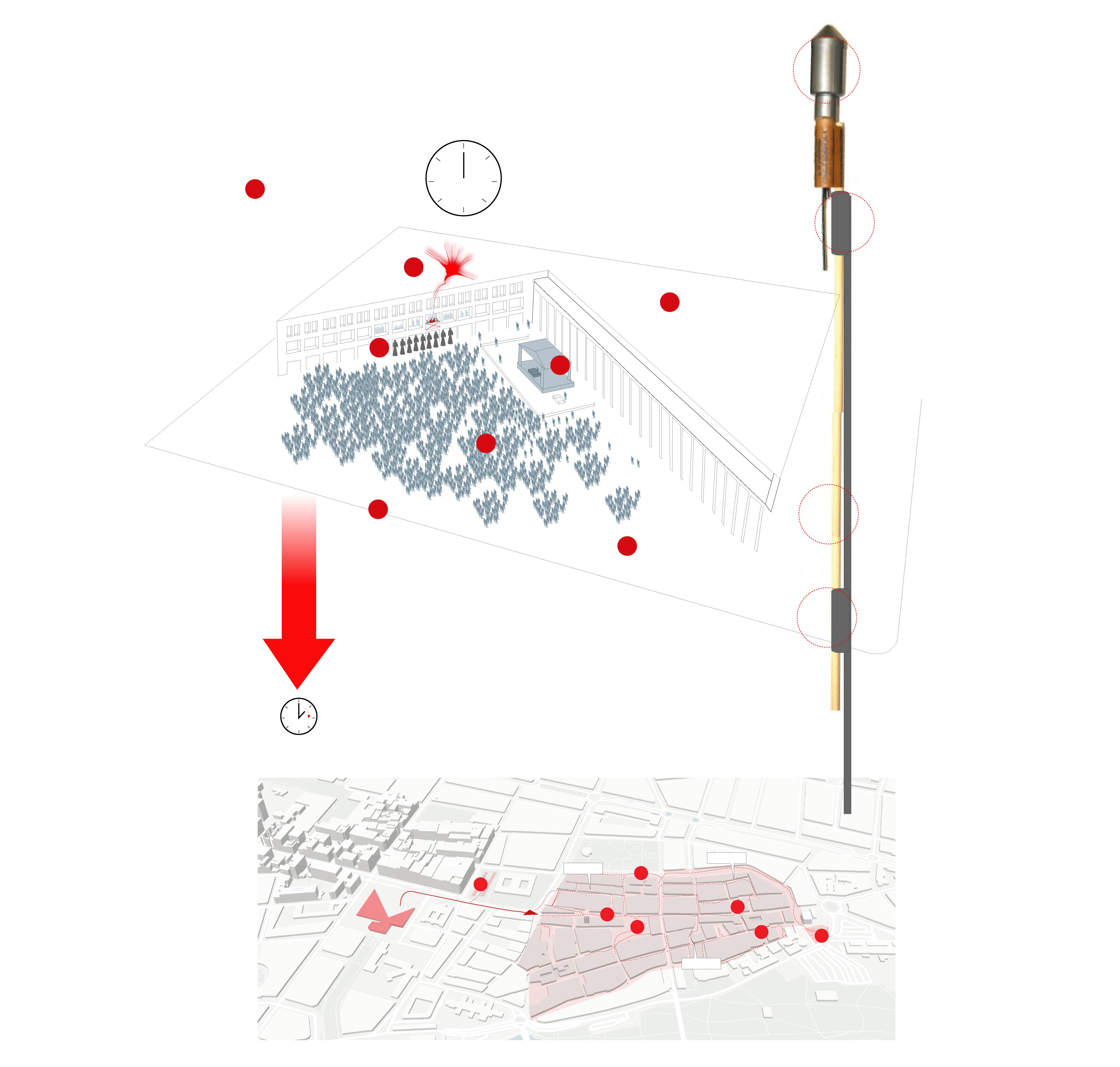 Desde el balcón se coloca el soporte sencillo para lanzar este tipo de fuego pirotécnico con más polvora para generar más ruido.