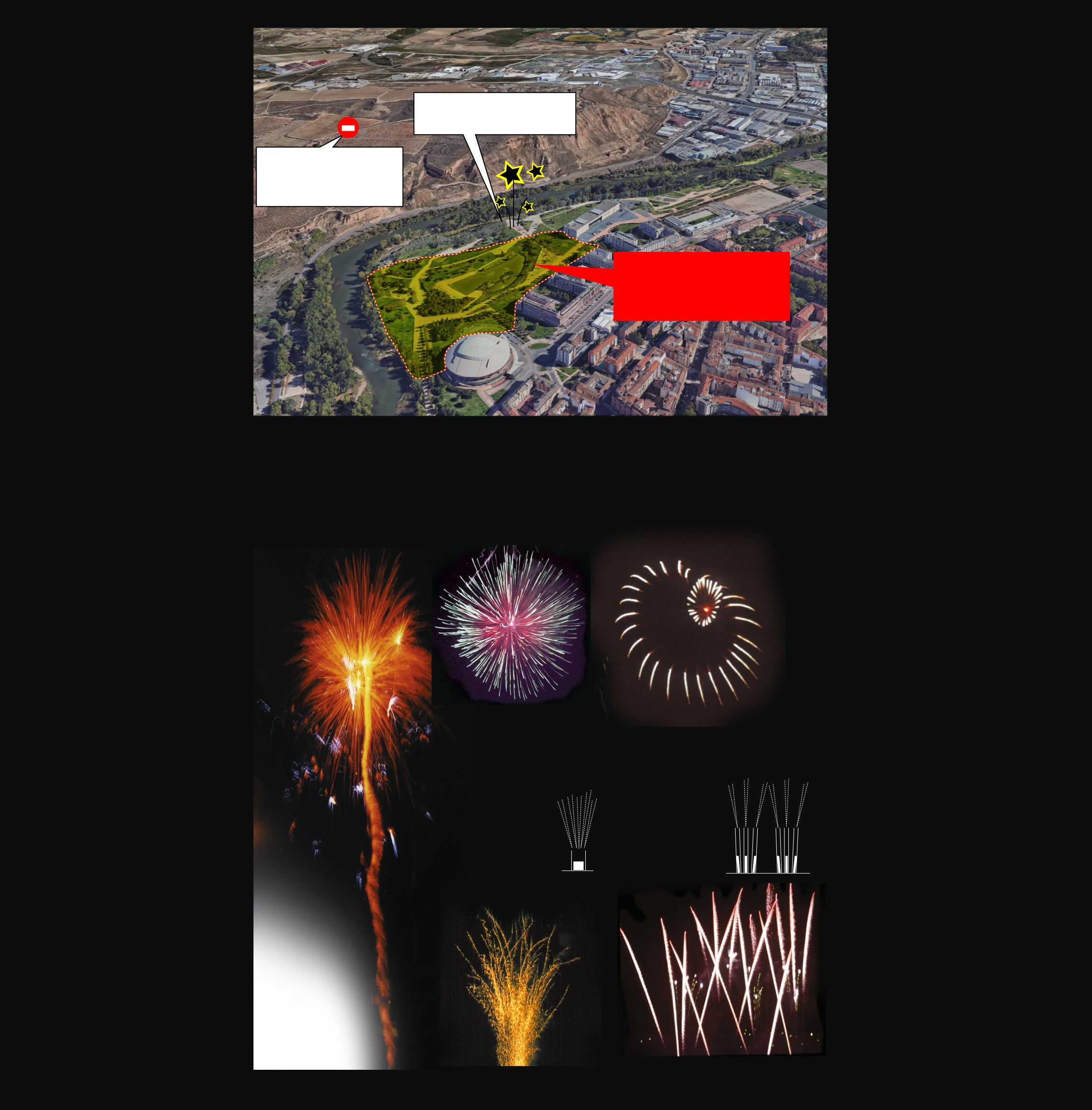 Disparan varios chorros de fuego a media altura que permanecen en el aire unos segundos