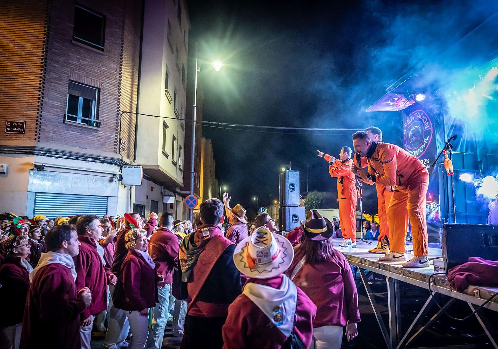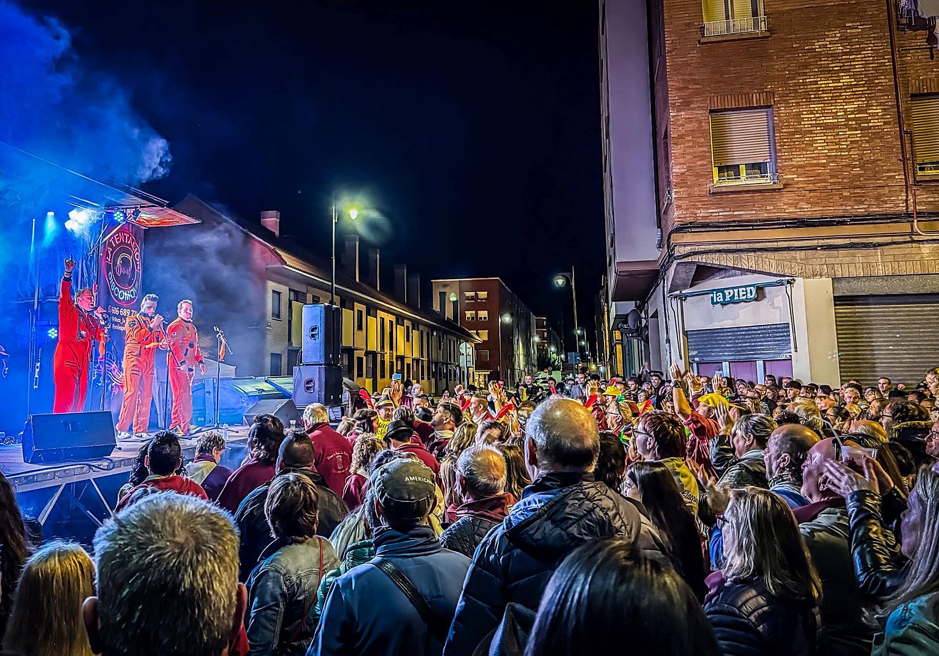 Los originales cantantes asturianos Javier Díaz Gotín, José Carlos Álvarez Fernández y Mario Mosteiro Fernández, ya jubilados y viviendo de los derechos de autor, cedieron el testigo a Eros Pérez, Jonathan Castaño y José Manuel Martínez cuando el productor Juan Miguel Osuna quiso resucitar la banda que triunfó en el verano de 1992. Así, pasada la medianoche y con la sintonía de 'Desafío total' aparecieron en el escenario disfrazados de astronautas, después de un cuarto de hora con los peñistas haciendo el indio en sus reservadas primeras filas como un palco VIP del Bernabeu. Unas 500 personas presenciaron aquello y, curiosamente, ni un alma se asomó a las ventanas ni para saber, aunque fuera por curiosidad, qué ruido era eso. Un esperpento. Fue una gamberrada con el único fin de hacer pasar un buen rato a los logroñeses, con buen humor y buena intención, lo malo es que a esa hora, en San Mateo, en Logroño, estaba eso o Maialen y Patxi en la Casa de Andalucía.