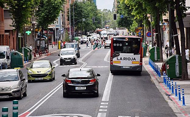 - En segundo lugar, se creará un carril de circulación exclusivo para autobuses cada sentido, con la intención clara y expresa de impulsar este medio de transporte como principal forma de comunicación norte-sur. Tras los estudios de tráfico realizados estas semanas se ha decidido mantener la exclusividad del autobús en un carril debido a que, en la actualidad, Vara de Rey es una arteria donde transitan a diario autobuses urbanos, interurbanos y aquellos que unen Logroño con otras ciudades.
