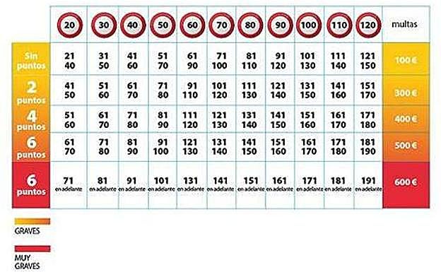 Concretamente, la Ley de Seguridad Vial y el Reglamento General de la Circulación, fija la normativa aplicable a los límites genéricos y específicos de velocidad, velocidad en adelantamiento y distancias entre vehículos. El incumplimiento de estas normas está tipificado como infracción grave o muy grave, sancionadas con multas de 100 a 600 euros, tal y como se recoge en la siguiente tabla: