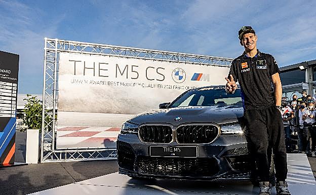 El piloto más rápido en clasificación durante la temporada 2021 de MotoGP ha vuelto a ser Fabio Quartararo. El francés, que logró el título de campeón del mundo en octubre a falta de algunas carreras, ha ganado este año el codiciado BMW M Award, por segunda temporada consecutiva. El premio para el ganador es tradicionalmente un modelo BMW M de altas prestaciones, este año el nuevo BMW M5 en Brands Hatch Grey Metallic, que fue entregado en Valencia durante el último fin de semana de competición de la temporada por Franciscus van Meel, CEO de BMW M, y Carmelo Ezpeleta, CEO del titular de los derechos de MotoGP, Dorna Sports.