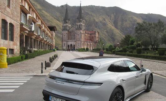 Lo pudimos comprobar en nuestra ruta que comenzó en el Centro Porsche Oviedo donde cogimos la autopista hasta Gijón, visitamos la Universidad Laboral, emblemático monumento construido en la postguerra y en vías de declararse Patrimonio de la Humanidad. Luego, por la A8 hasta la Basílica de Covadonga, lugar de peregrinación por ser el lugar donde comenzó la Reconquista de la Península Ibérica. Visita obligada es subir a los Lagos Enol y Ercina, lagos de alta montaña conocidos por ser final de etapa de la Vuelta Ciclista. La carretera serpentea a lo largo de 13 kilómetros por un trazado estrecho y roto en los márgenes en muchos tramos. Subiendo, el consumo se dispara hasta los 28 kWh, aunque la frenada regenerativa permitió, en la bajada, dejar la media de consumo en 22 KWh. Parada obligatoria en el Mirador de La Reina, para continuar a Llanes, donde realizamos una carga de la batería en un cargador de EDP, habituales en la cornisa cantábrica. El cargador es de 50 KWh, y después de 35 minutos de recarga conseguimos recuperar una autonomía del 85% lo que nos permite realizar otros 300 kilómetros. La ruta continúa hasta Colunga donde tenemos ocasión de visitar el Museo de los Dinosaurios, y como estamos cerca de la Villa marinera de Lastres y se está acercando la hora de comer, que mejor que aprovechar la ocasión para degustar alguno de sus exquisitos platos de pescado.