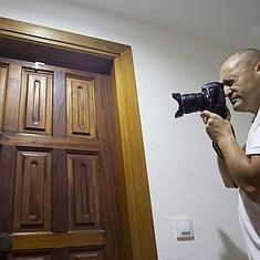 Un fotógrafo toma imágenes de la puerta de la vivienda donde se produjo el crimen.