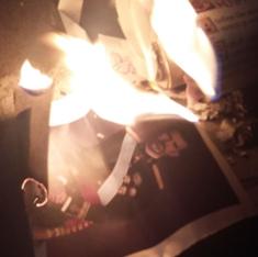 La imágenes del Rey estaban impresas en hojas de papel que, en el reverso, contenían una página de la Constitución, y han sido quemadas con las antorchas que llevaban algunos de los manifestantes.