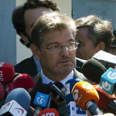 El responsable de Justicia ha dicho que de momento no le consta que la Fiscalía haya iniciado ninguna actuación contra la quema de algunas banderas y fotos del Rey que se produjo en la manifestación de la izquierda independentista y anticapitalista. Sin embargo, ha indicado que "no será difícil actuar" en este sentido, ya que hay imágenes disponibles, por lo que "si se acredita delito y se identifica a los autores", se podrán tomar medidas. El ministro considera que, para este tipo de delitos, no se debe tener una "tolerancia mayor que con otros" como los relacionados con el tráfico. "Cuando alguien comete injurias contra determinados símbolos, tiene una responsabilidad", ha advertido.