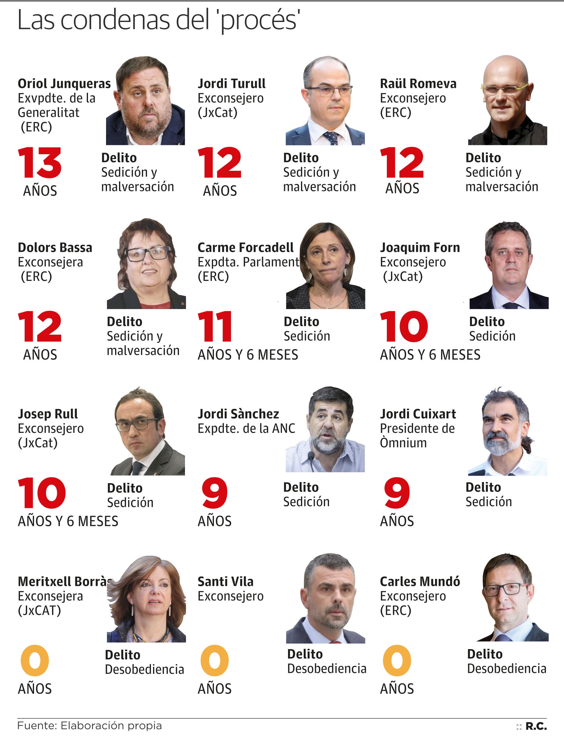 El movimiento del Gobierno, que podría resolverse en unos seis meses, según han señalado desde el Ministerio de Justicia, podría ser uno de los gestos que Esquerra Republicana llevaba tiempo reclamando para avenirse a negociar los Presupuestos Generales del Estado. Algunos de los presos del 'procés', como Oriol Junqueras, han rechazado públicamente el indulto («que se lo metan por donde les quepa», dijo) e insisten en que la única solución en materia de presos es la amnistía, aunque ya no podrán decir que el Gobierno no mueve ficha en materia de «poner fin a la represión», según el lenguaje de los secesionistas. El Gobierno también se ha mostrado dispuesto a reformar en breve el delito de sedición, que podría beneficiar retroactivamente a los reos independentistas. «Veremos en qué se concreta. Que los tramiten no quiere decir que los concedan», ha afirmado la diputada de JxCat, Laura Borràs.