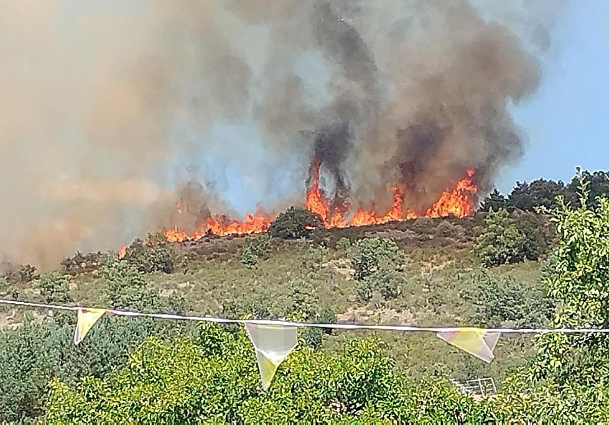 El incendio forestal que se ha declarado a las 14,36 horas en la localidad burgalesa de Monterrubio de la Demanda bordea el límite de La Rioja, según fuentes consultadas por este medio, que sitúan las llamas a 500 metros del límite fronterizo, aunque eso sí, con pronóstico favorable gracias a un cambio repentido del sentido del viento. El incendio, avivado por las abundante presencia de brezos y retamas, empezó a amansarse después de quemar hasta ahora en torno a 130 hectáreas. Helicópteros y aviones movilizados, además de numerosas cuadrillas, ayudados por los abundantes recursos hídricos de la zona, han contribuido a reprimir el fuego, que sin embargo a estas horas sigue sin estar controlado. La extinción, en la que a las 20.42 horas participaban 42 efectivos de La Roja, se espera que sea larga y dure muchas horas.
