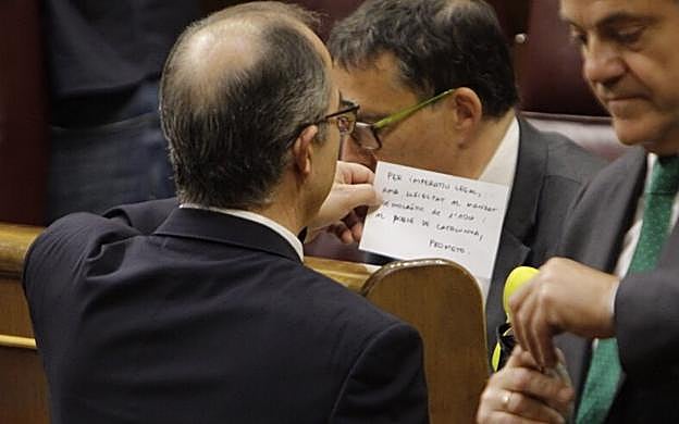 El preso Jordi Turull saluda a Zaragoza (PSC) y hablan un buen rato. Abascal, sentado al lado, se levanta y le da la espalda para no tener que saludarlo. El de Vox evita la foto.