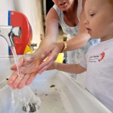 6. Lavar las manos de los niños con agua y jabón con frecuencia, especialmente después de toser y estornudar, tras sonarse y tocarse la nariz o la boca, antes y después de cada comida.