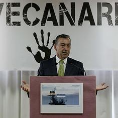Rivero ha acudido hoy a la capital para que los ciudadanos de la península conozcan "el atropello" democrático y el trato "humillante" contra el pueblo canario. A este acto se han sumado cinco organizaciones ecologistas que han reiterado su rechazo a los sondeos en Canarias: Amigos de la Tierra, Ecologistas en Acción, Greenpeace, SEO/BirdLife y WWF.