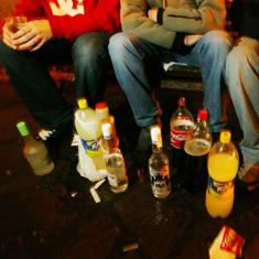 Jóvenes beben vodka mezclada con bebidas gaseosas en la vía pública.