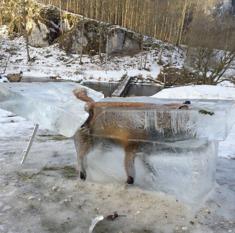 El animal cayó a un río y las bajas temperaturas le bloquearon entre el hielo
