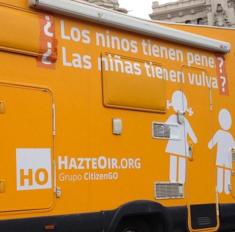 Arcópoli ha apoyado el arranque del autobús del "respeto y la libertad", que busca hacer frente al que Hazte Oír puso en circulación. En contraposición con el mensaje de Hazte Oír, en este autobús, de color verde, se puede leer 'Esto es un pene. Esto es una vulva ¿Y esto qué es? La identidad de género no se elige. Que no la elijan otros por ti'. El lema está acompañado de imágenes de los aparatos reproductores femenino y masculino junto a otra del presentador El Gran Wyoming.