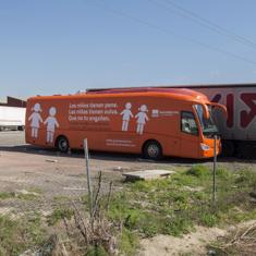 El autobús de HazteOir, tras parar en el área de servicio de Zuasti, donde también ha sido recibidos con una protesta de activistas LGTBI; y ser parado por la Policía Municipal en el polígono de Agustinos, en uno de los accesos a Pamplona; ha llegado al centro de la capital navarra hacia las 12.49 horas, cuando ha llegado a la sede del Legislativo por la calle Yanguas y Miranda.