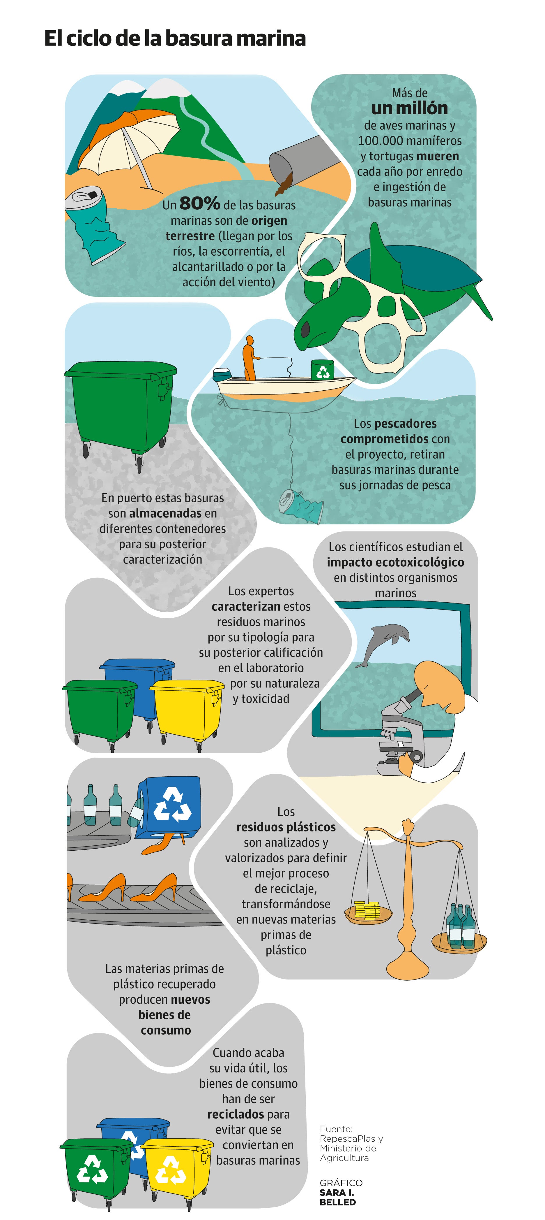 Para esto se siguen una serie de fases y procedimientos. Implicaron a pescadores para concienciarlos sobre la recogida de estos residuos. En su segunda anualidad, el proyecto extrajo un balance de 5000 kilos de basuras marinas recuperadas de las aguas de los puertos de Marín en Galicia, la Restinga en la isla de El Hierro y el de Gandía en Valencia.
