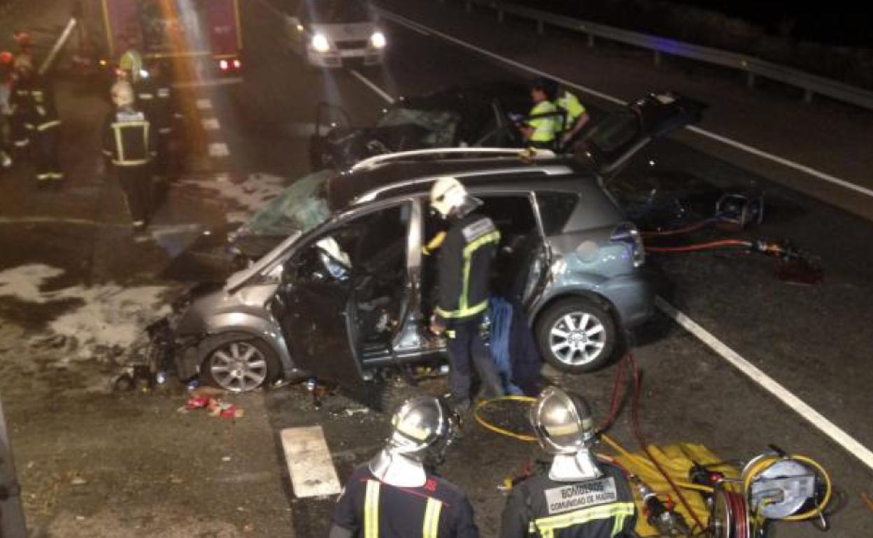 Hasta el lugar del accidente, se desplazaron varias dotaciones de Bomberos de la Comunidad de Madrid. Uno de los coches había sufrido un choque frontal con la mediana y su conductor estaba atrapado en su interior con lesiones mortales. El segundo coche había dado varias vueltas de campana, quedándose igualmente su conductor atrapado en el interior. Los sanitarios solo han podido confirmar el fallecimiento.