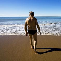 Un anciano se dispone a entrar en el agua.