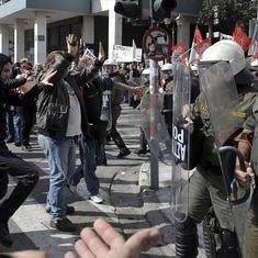 Manifestantes antiausteridad se enfrenta a la Policía en Atenas