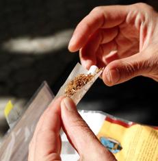 Hombre liándose un cigarro.